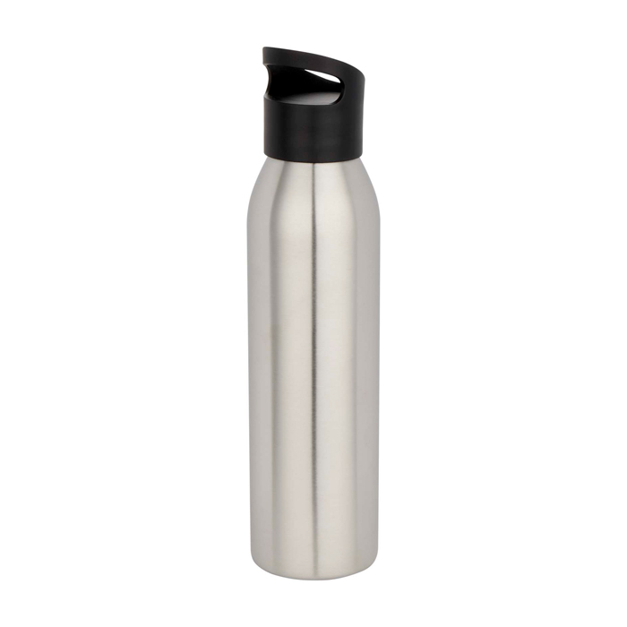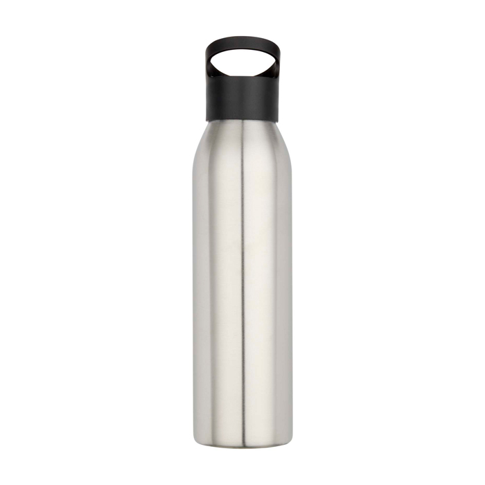 Garrafa de água de parede simples fabricada com aço inoxidável reciclado com certificação RCS, um material leve e resistente. A estrutura incorpora uma pega que facilita o transporte, além de ser compatível com os bolsos laterais da maioria das mochilas e com os porta-copos normais dos carros. Capacidade: 650 ml.