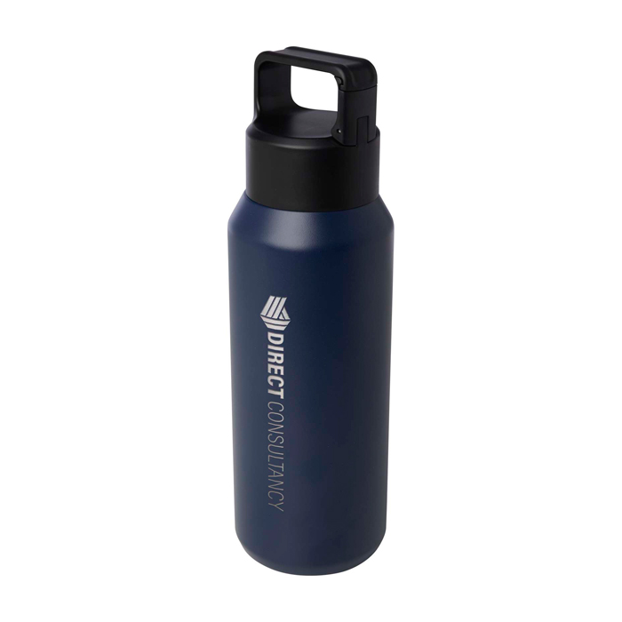 Fixe a sua marca em qualquer lado com esta garrafa isolada a vácuo e tampa com mosquetão. Manterá as suas bebidas frias enquanto o acompanha em cada aventura.