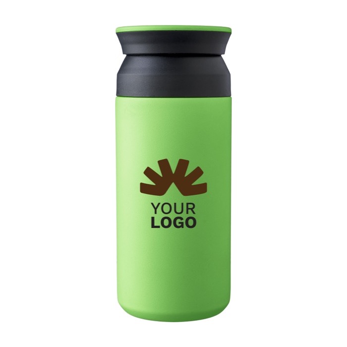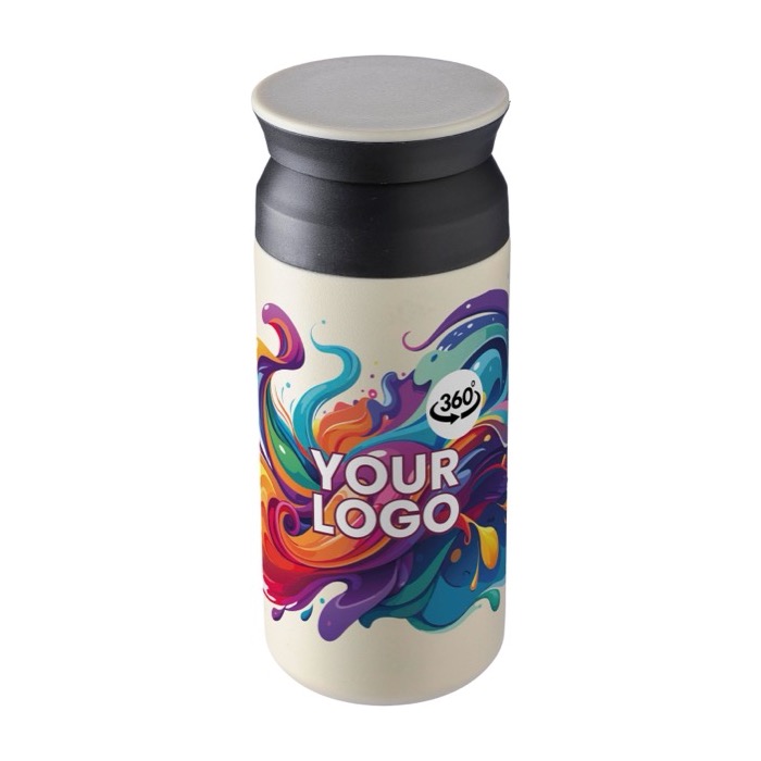 Copo de aço inoxidável de parede dupla (350 ml) com tampa plana e abertura de PP. Lacado mate. Interior de aço inoxidável 304 e exterior de aço inoxidável 201. Mantém o conteúdo quente durante 12 horas e frio durante 18 horas. Apresentado em caixa-oferta de cartão castanha.