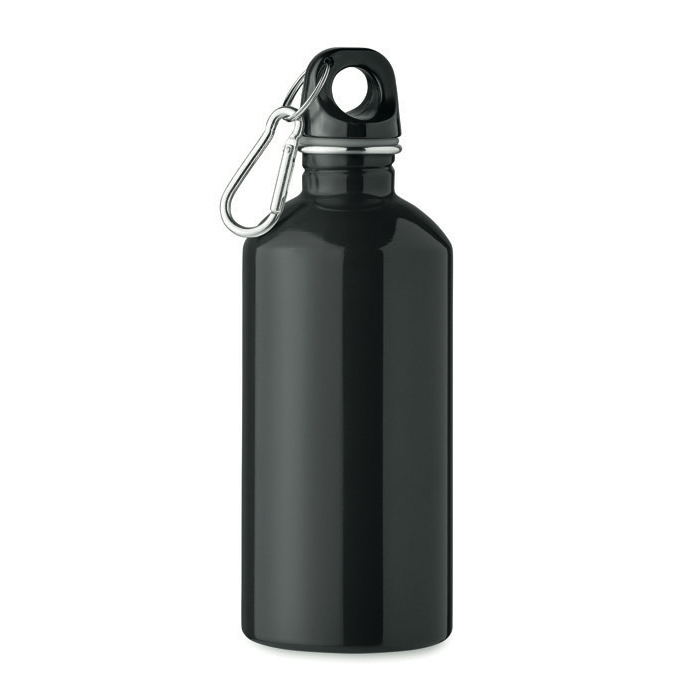 Garrafa de parede simples de aço inoxidável reciclado (90% reciclado e 10% aço inoxidável) com capacidade de 500 ml e mosquetão para a prender a mochilas e carteiras. Estrutura antifugas e antigotas para evitar derrames em deslocações e uso diário. A impressão via sublimação (marcação a cor bem garrida por transferência térmica) apenas está disponível no modelo branco. Por ser de parede única, pode transferir o calor da bebida para o exterior. Opção prática para kits de boas-vindas, eventos e ações de marca.