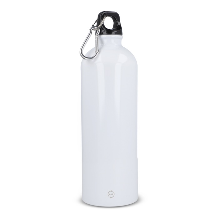 Garrafa de aço reciclado com mosquetão perfeita para dar visibilidade à sua marca em atividades ao ar livre, eventos desportivos ou ações de sustentabilidade.