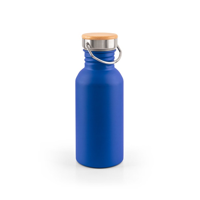 Garrafa de aço inoxidável de parede simples (90% reciclado) com capacidade de 580ml, pensada para uso diário no escritório e em deslocações. A tampa de bambu inclui uma pega em aço inoxidável que facilita o transporte e a preensão. Está disponível numa ampla gama de cores e é entregue numa caixa de oferta em papel kraft, pronta a incluir em packs corporativos. Por ser fabricada com materiais naturais, o tom e o resultado da impressão podem variar entre unidades, consoante o veio e o acabamento.