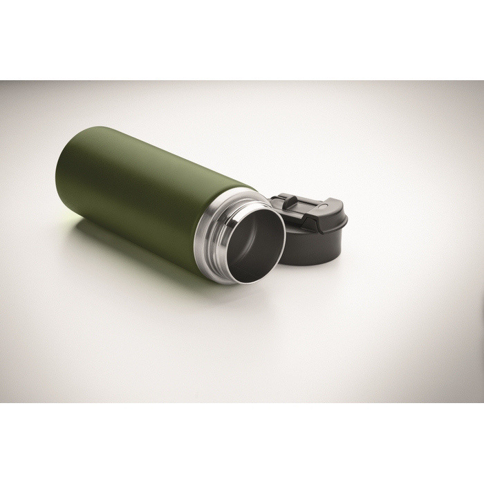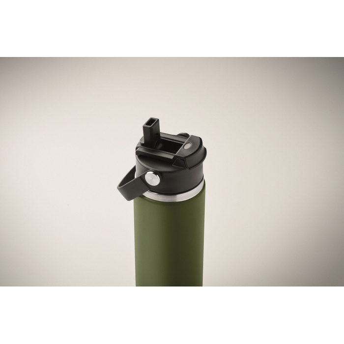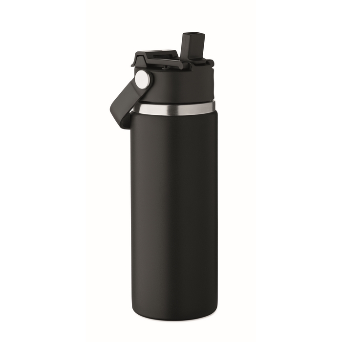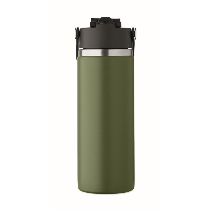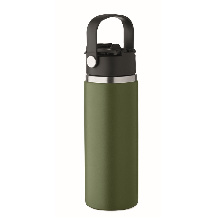 Garrafa de parede dupla de aço inoxidável reciclado (90% reciclado e 10% aço inoxidável), concebida para o uso diário no escritório ou deslocações. Inclui tampa para sorver com pega e palhinha combinada para se adaptar às várias formas de consumo. O fecho antifugas ajuda a evitar derrames em mochilas ou pastas. Capacidade de 500 ml, prática para uma hidratação constante durante o dia de trabalho. Opção adequada para packs de boas-vindas, eventos internos e ações de merchandising corporativo.