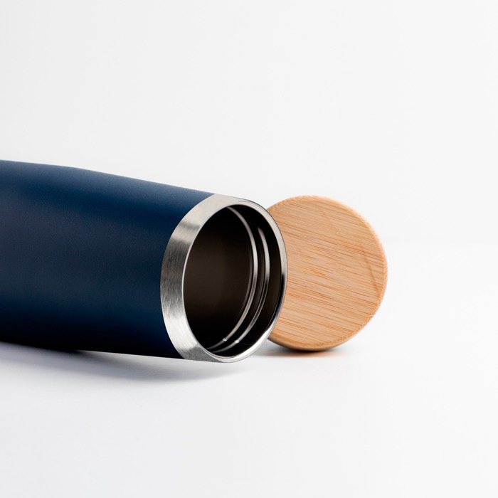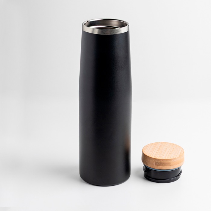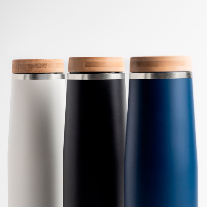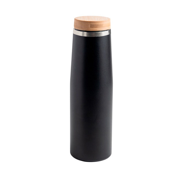Garrafa térmica de aço inoxidável com tampa de bambu natural 550 ml