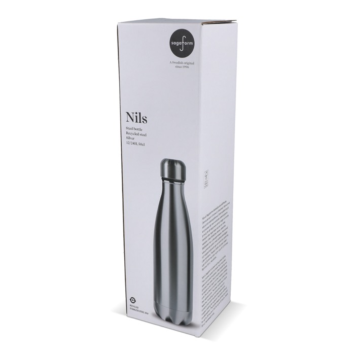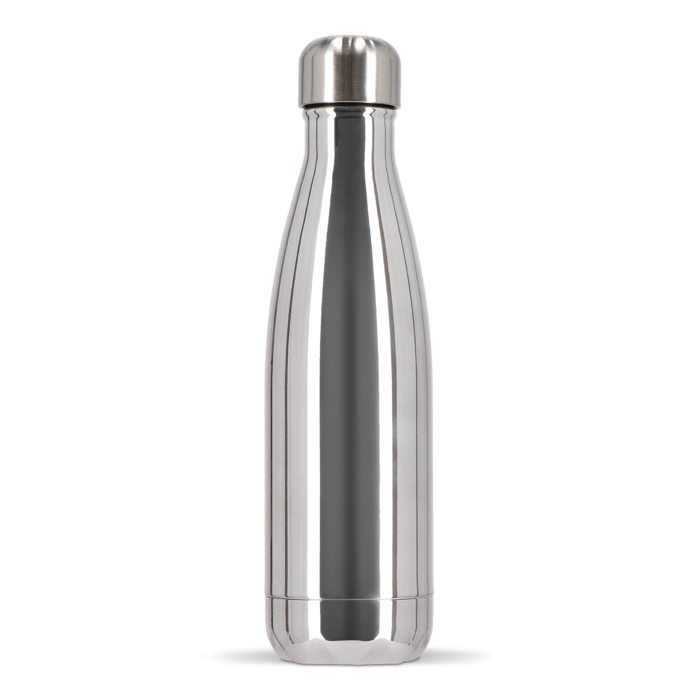 Garrafa térmica cromada feita de aço reciclado, combina elegância e funcionalidade. O acabamento brilhante e estrutura de parede dupla com revestimento de cobre mantêm as bebidas frias 24 h ou quentes 12 h sem condensação. Ideal para gravação a laser. Recomenda-se lavagem à mão. Entregue em caixa-oferta.