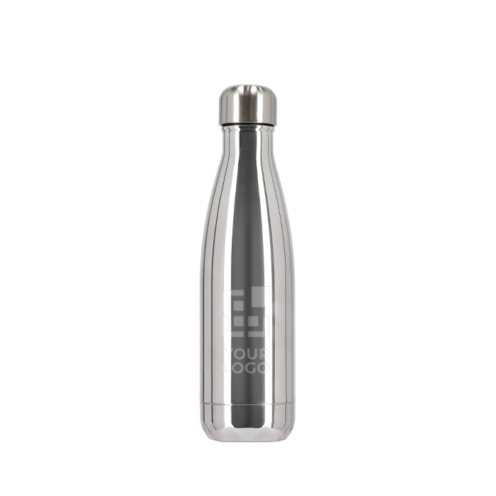 Ostente a sua marca com esta elegante e sofisticada garrafa térmica cromada, que mantém as suas bebidas frias 24 h ou quentes 12 h. Sem condensação.