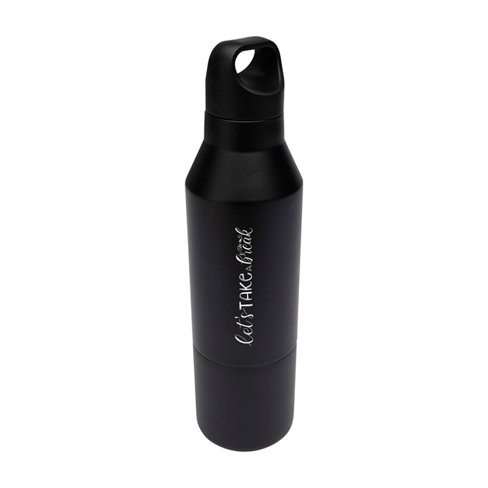 Garrafa com isolamento de cobre com parede dupla de aço inoxidável com certificação RCS e copo amovível. Esta garrafa multiusos foi concebida para caber no bolso lateral de uma mochila e conta com uma cómoda pega de transporte integrado na tampa. Revestimento exterior duradouro. Mantém as bebidas quentes por 12 horas e frias por 24 horas. Apresentada em caixa-oferta de cartão reciclado. Capacidade volumétrica da garrafa: 600 ml. Capacidade volumétrica do copo: 300 ml.