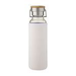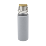 Simples garrafa de vidro personalizada com manga de silicone para maior proteção, um modelo muito duradouro graças ao seu vidro de alta qualidade.
