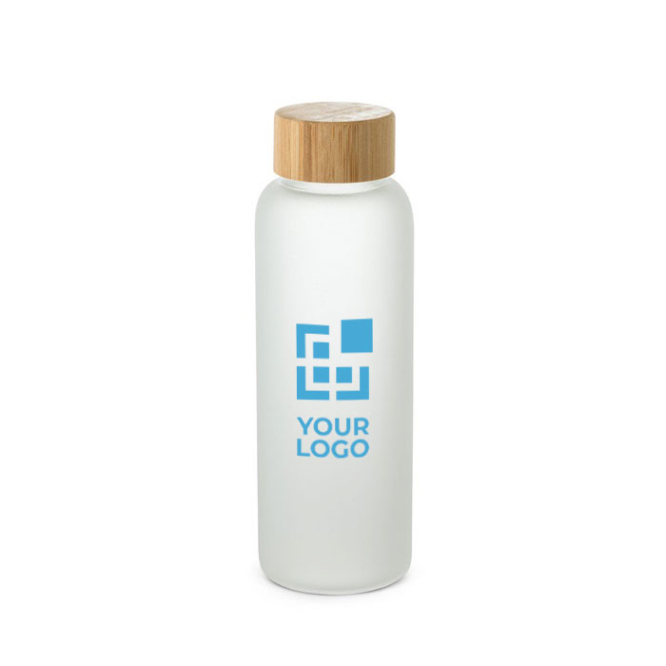 Garrafa de vidro personalizada com acabado mate e tampa de bambu 500ml