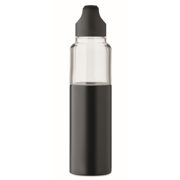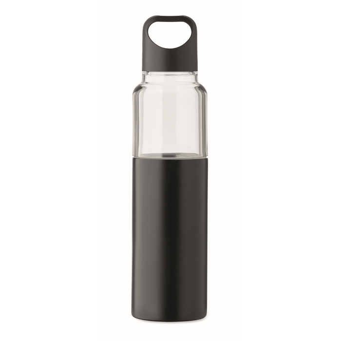 Garrafa 2 em 1 de Tritan com copo de parede dupla de aço inoxidável reciclado. Inclui duas tampas de PP para separar e fechar cada parte de forma prática. Capacidade total de 610 ml e copo independente de 350 ml, útil para servir bebida sem necessidade de levar um recipiente adicional. A combinação de garrafa e copo ajuda a organizar o consumo no escritório, eventos ou deslocações. Escolha adequada para kits de boas-vindas, ações de fidelização ou merchandising corporativo.