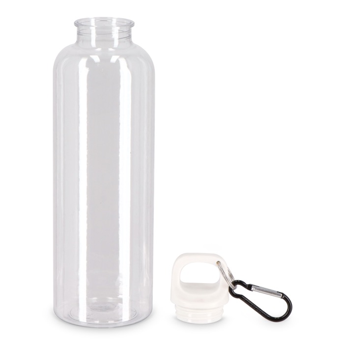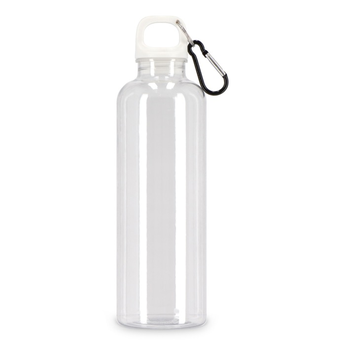 Mantenha-se hidratado com estilo e de forma sustentável com esta garrafa de água rPET de 750 ml com acabamento transparente. Equipada com um mosquetão prático, é perfeita para prender a mochilas, bolsas ou sacos desportivos. Disponível num leque de cores vivas, modernas e promocionais.