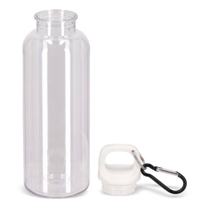 Mantenha-se hidratado com estilo e de forma sustentável com esta garrafa de água rPET de 500 ml com acabamento transparente. Equipada com um mosquetão prático, é perfeita para prender a mochilas, bolsas ou sacos desportivos. Disponível num leque de cores vivas, modernas e promocionais.