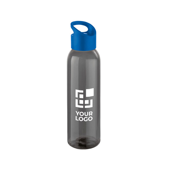 Garrafa personalizável projetada para desporto que é feita de PP e PS. A sua capacidade é de 630 ml, podendo transportar um volume maior do que as garrafas de água convencionais. Portanto, é um complemento ideal para pessoas que frequentam regularmente o ginásio ou que fazem excursões que não envolvem um número de horas muito elevado. No entanto, esta garrafa publicitária desportiva destaca-se pelo tom escuro do recipiente, sendo um elemento diferenciador em relação a outros designs. Por outro lado, é possível escolher a cor da tampa (existem várias possibilidades), que tem o formato de uma pequena pega para poder transportá-la mais facilmente.