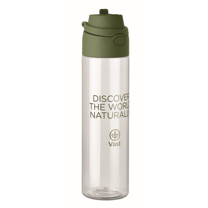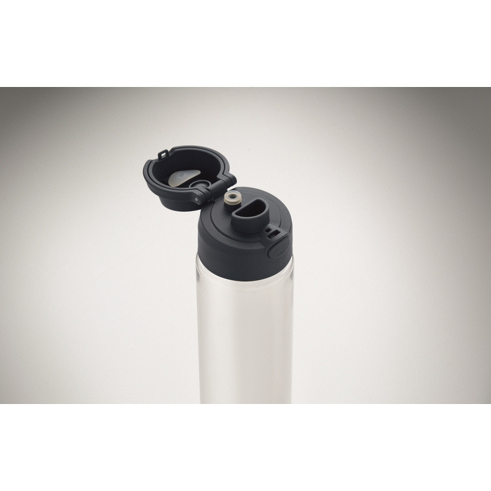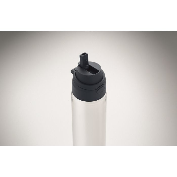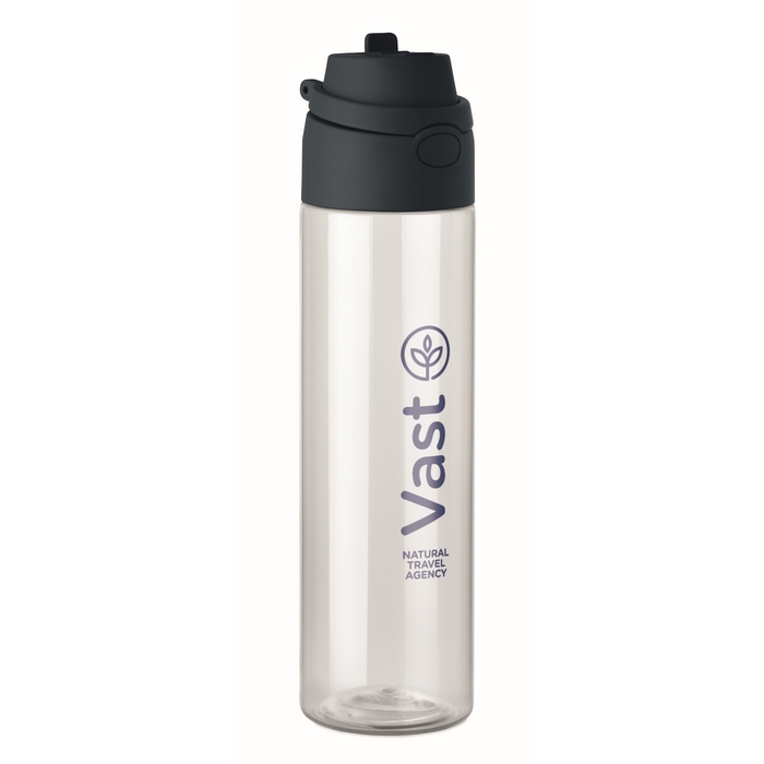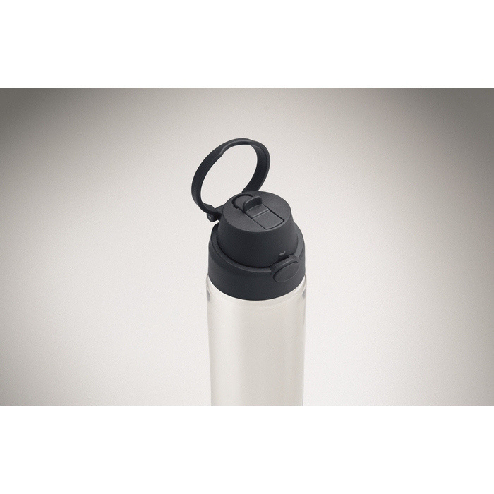Garrafa de rPET com capacidade de 700 ml, desenhada para uso diário confortável no escritório, eventos ou deslocações. Inclui palhinha 2 em 1 para alternar entre beber diretamente ou com palhinha de acordo com a ocasião. Pega de transporte que facilita pendurar ou levá-la à mão. O fecho antifugas ajuda a evitar derrames em mochilas ou sacos. Solução prática para dotar equipas internas, packs de boas-vindas ou ações de merchandising.