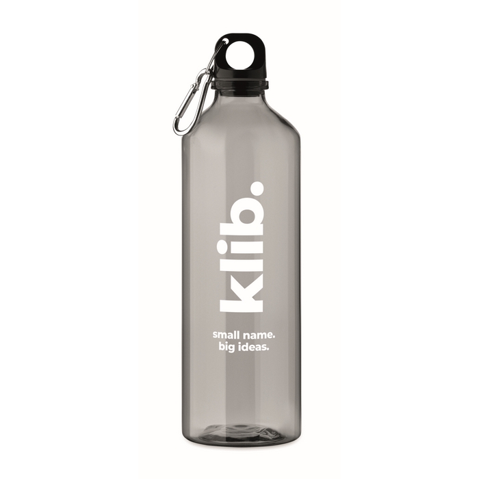 Garrafa translúcida de rPET com capacidade de 750 ml, pensada para uso diário no escritório, formação ou eventos. Conta com mosquetão para a prender à mochila, carteira ou cinto, facilitando o transporte em deslocações. O corpo transparente ajuda a controlar o nível de água com uma simples olhadela. O formato oferece uma boa pega para a encher rapidamente. Adequada como artigo de boas-vindas para colaboradores ou como brinde em feiras e ações de angariação.