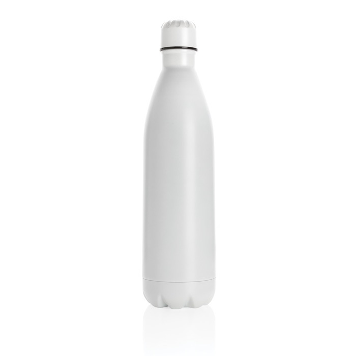 Garrafa de aço inoxidável isolada a vácuo de cor sólida. A garrafa mantém as bebidas frias até 15 horas e quentes até 5 horas. Graças à sua grande capacidade de 1 litro, é ideal para uma excursão de um dia.