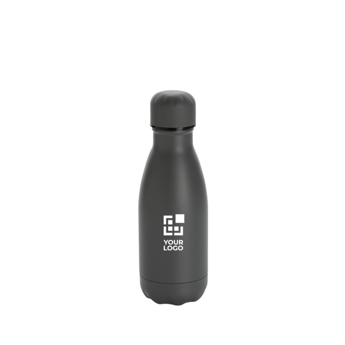 Desenhada para poder levá-la a qualquer parte, esta garrafa de aço inoxidável e isolada a vácuo é uma excelente opção de promoção de marca. Trata-se de um acessório de 260 ml que, disponível em várias cores, mantém as bebidas frias até 15 horas e as bebidas quentes até 5 horas. Por sua vez, pode ser personalizada com o seu logótipo tanto na tampa como no corpo do produto, inclusive conseguindo designs a cores. Assim, o seu formato compacto, juntamente com o seu sistema antigota, tornam esta garrafa uma opção excelente para levar sempre consigo na mala ou para garantir que os mais pequenos tenham uma fonte de hidratação na sua mochila para o dia a dia escolar.