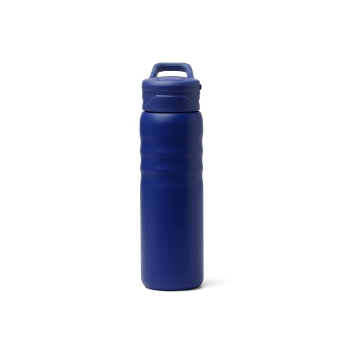 Garrafa térmica de parede dupla em aço inoxidável reciclado 304, concebida para utilização diária no escritório e em deslocações. A tampa inclui palhinha rebatível com revestimento de silicone, abertura automática por botão e fecho individual para um manuseamento confortável. Incorpora bloqueio de segurança para evitar aberturas acidentais e sistema antigotejo graças ao anel do gargalo e à vedação em silicone. Acrescenta uma pega de transporte integrada na tampa para a mover com facilidade. Adequada para ações de marca em eventos internos ou como oferta de boas-vindas.