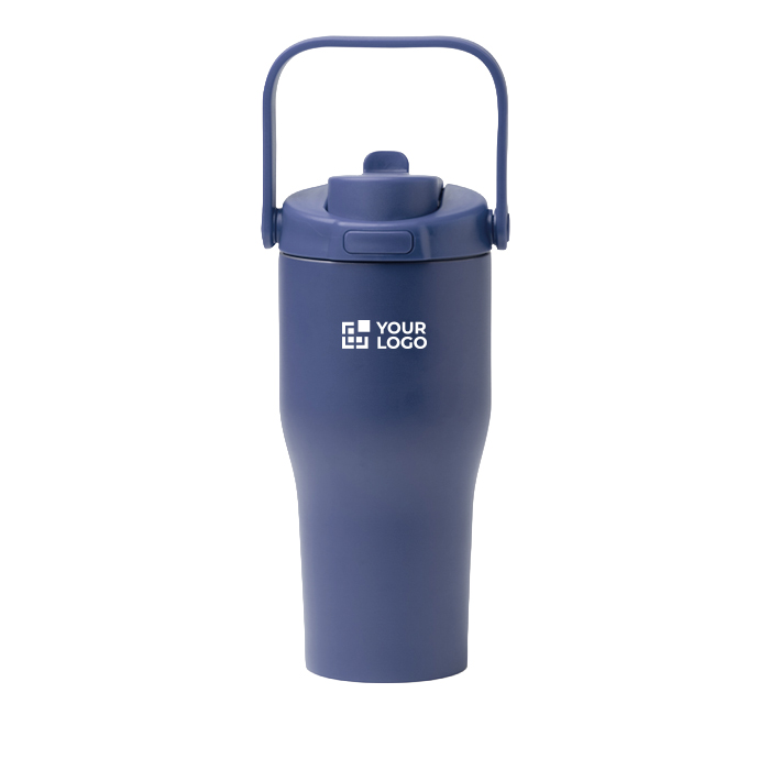 Garrafa térmica de parede dupla em aço inoxidável 304 reciclado com capacidade de 550 ml, pensada para o uso diário no escritório, em deslocações e em eventos. Incorpora tampa de rosca com doseador automático de dupla abertura por botão de pressão e palhinha rebatível para beber com uma só mão. O sistema anti-fugas com reforços de silicone ajuda a evitar derrames de líquidos em mochilas ou sacos. Inclui pega completa de transporte para a levar confortavelmente. Opção prática para ações de marketing interno ou merchandising empresarial.
