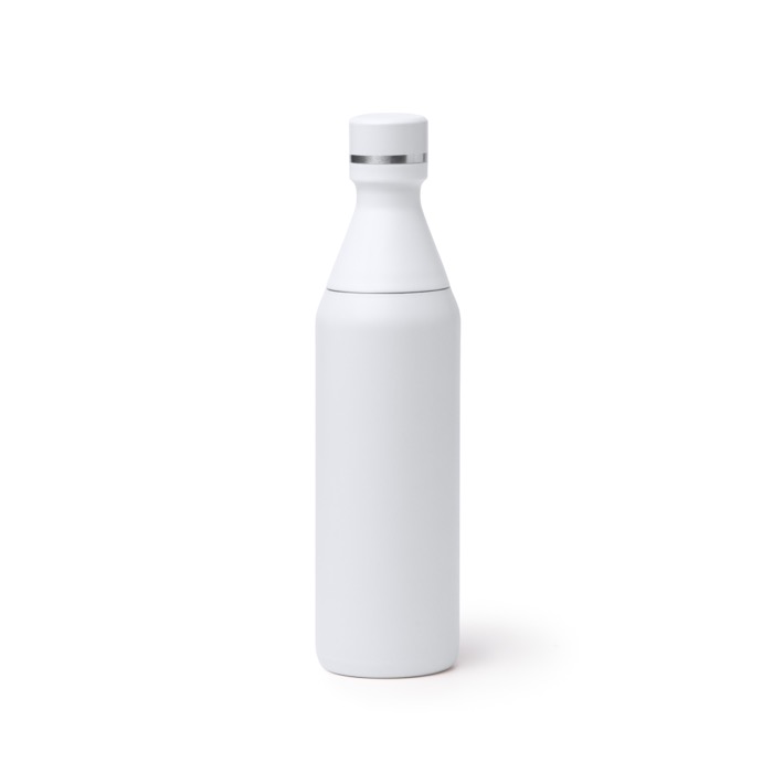Garrafa térmica em aço inoxidável 304 com parede dupla, pensada para o uso diário no escritório, em eventos e em deslocações. Inclui dupla abertura no corpo para separar o doseador, o que facilita o enchimento e a limpeza e permite colocar gelo com comodidade. O doseador inclui uma tampa independente para um fecho mais prático durante o transporte. A capacidade de 550ml ajuda a manter uma hidratação constante sem ocupar demasiado espaço. Opção útil para campanhas de marca, ofertas internas ou ações com logótipo em feiras.