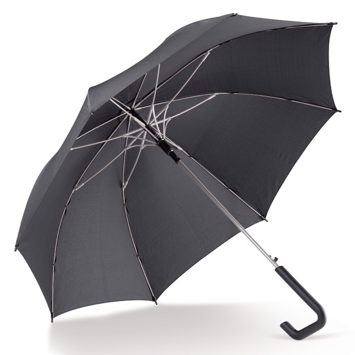 Guarda-chuva de aspeto elegante com um cabo de gancho de design chamativo. A estrutura colorida é feita de fibra de vidro para maior resistência.