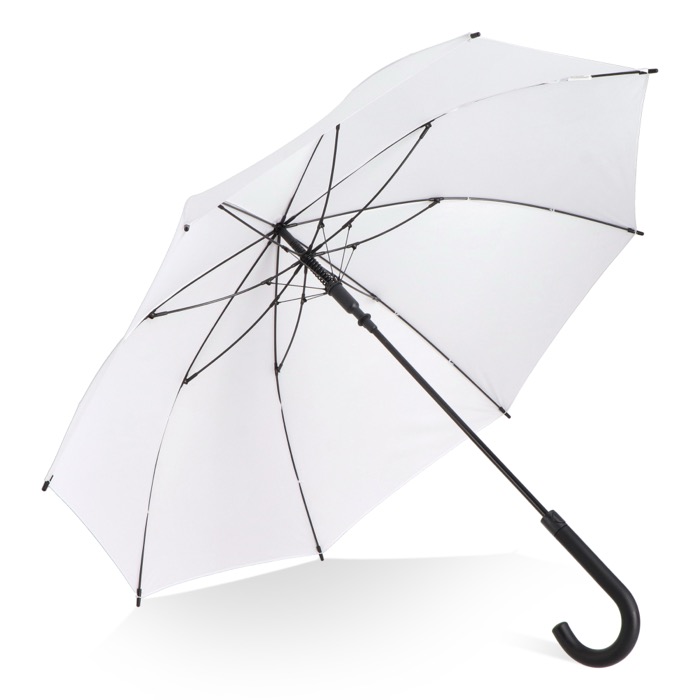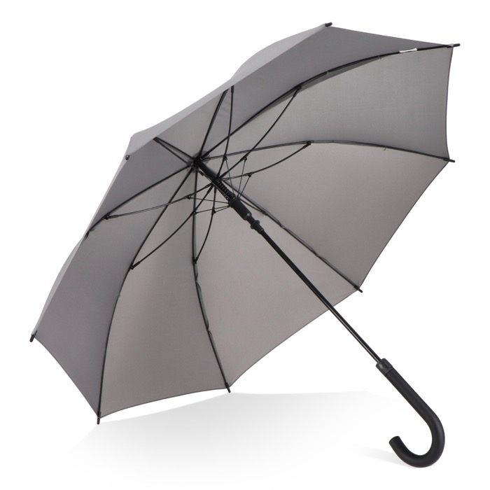 Guarda-chuva resistente ao vento com abertura automática e armação de fibra de vidro. Protege-o nos dias chuvosos enquanto publicita a sua marca.