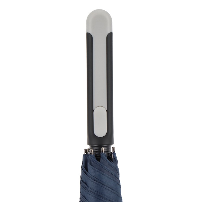 Impulsione a sua marca sob a chuva com um guarda-chuva de design inovador que garante conforto/resistência. Com abertura automática e armação de fibra de vidro.
