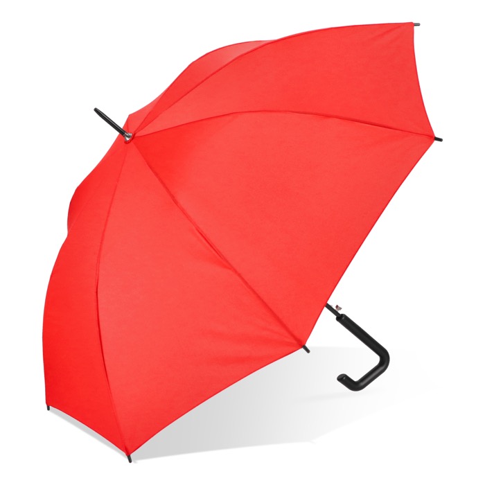 Guarda-chuva resistente com punho ergonómico em paralelepípedo e abertura automática que transforma a chuva na oportunidade perfeita para promover a sua marca.