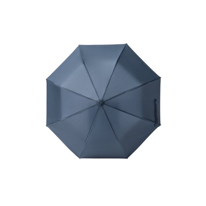 Guarda-chuva dobrável com varetas de fibra de vidro e cabo de metal. Inclui saco em RPET. Um produto adequado para ter à mão em eventos no exterior.