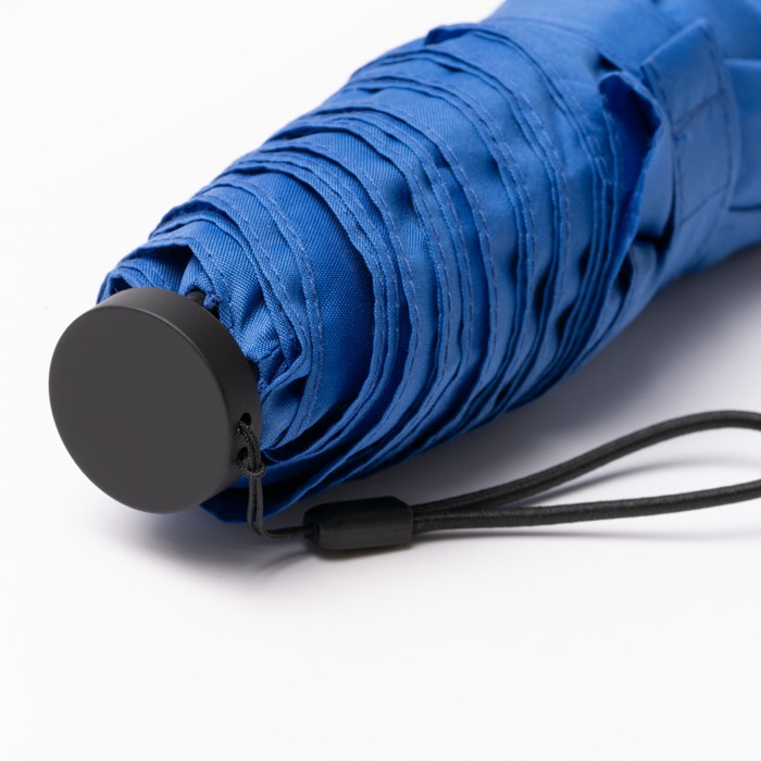 Guarda-chuva mini dobrável em plástico reciclado com tecido pongee 190T e abertura manual, concebido para o acompanhar nas deslocações diárias. Combina varetas de fibra de vidro e estrutura central em alumínio para proporcionar rigidez e melhorar o desempenho face ao vento. Inclui proteção UV UPF50 com revestimento transparente para uma utilização mais confortável em dias de sol. A dobragem compacta facilita guardá-lo na mochila, na mala ou no porta-luvas. Inclui pega de transporte preta e bolsa a condizer, útil para ações de empresa em feiras ou como oferta interna.