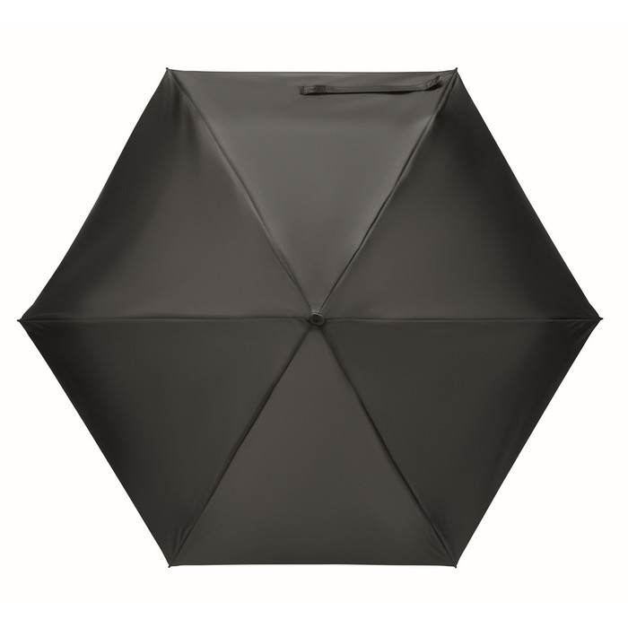 Guarda-chuva antivento de 19 polegadas com 5 dobras e abertura e fecho manual de pongee 190T. Apresentado em estojo de EVA.