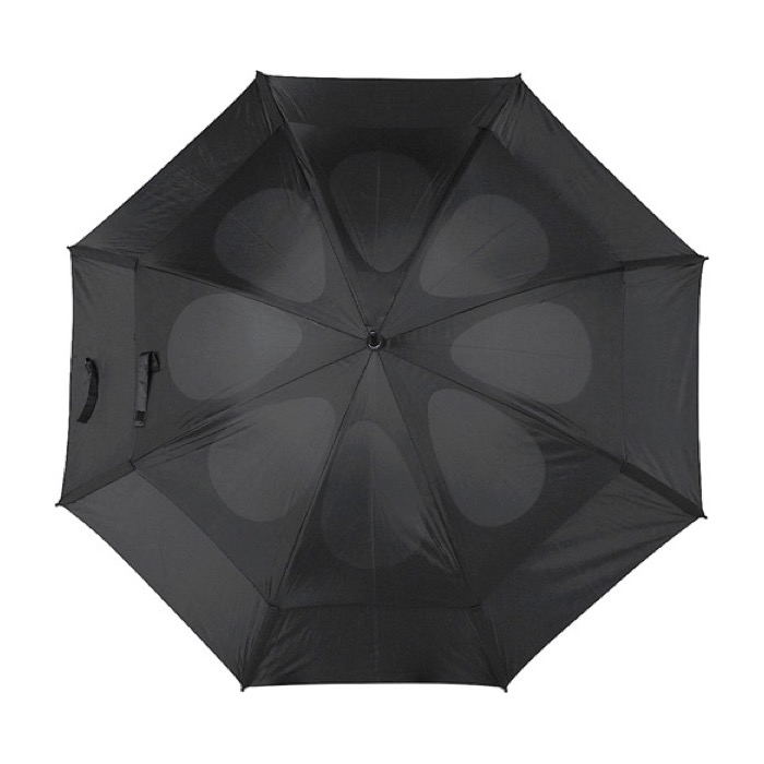 Um guarda-chuva personalizado manual de qualidade, que está pensado para ser antitempestade. Conta com punho de borracha, varas de metal e bolsa a condizer.