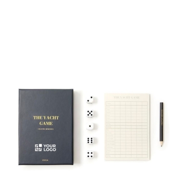Jogo de dados Yacht em madeira de pinho com bloco, caneta e saco