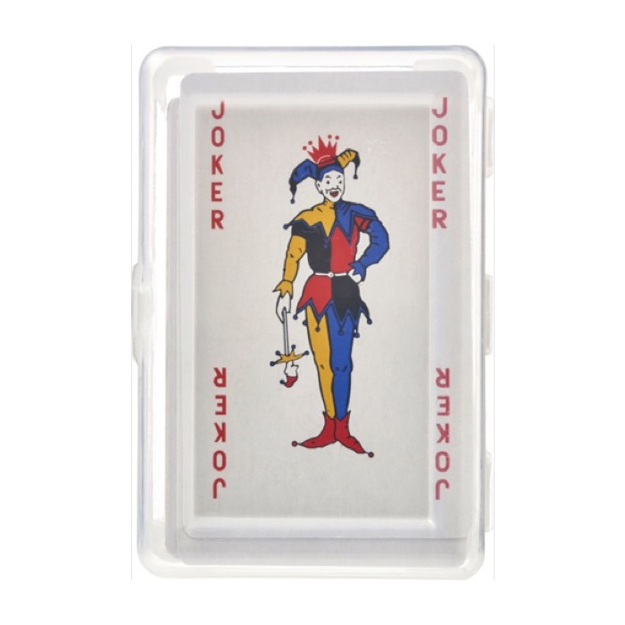 Baralho clássico de cartas em caixa PET transparente. 54 cartas no total.
