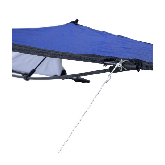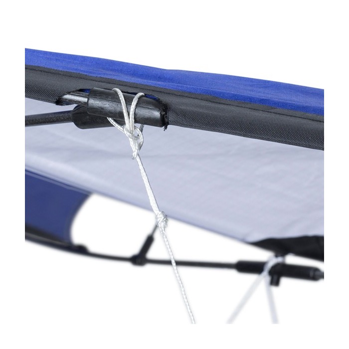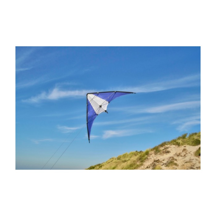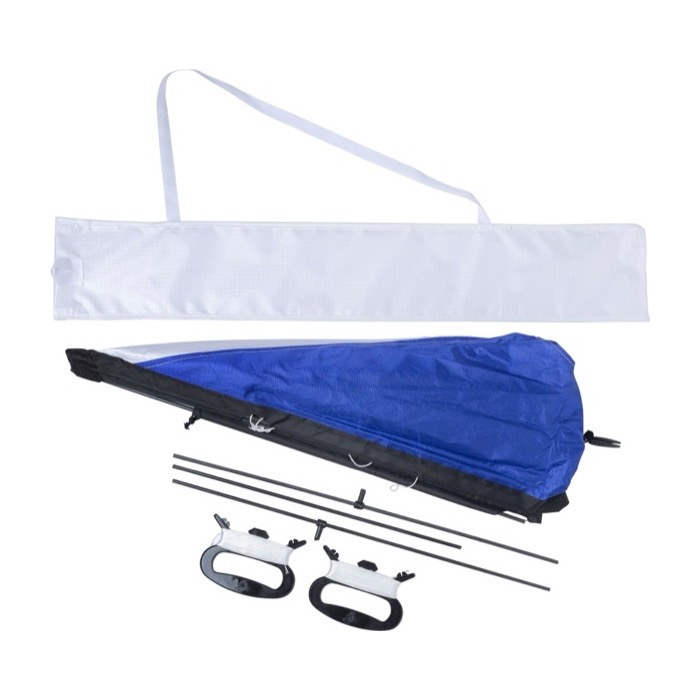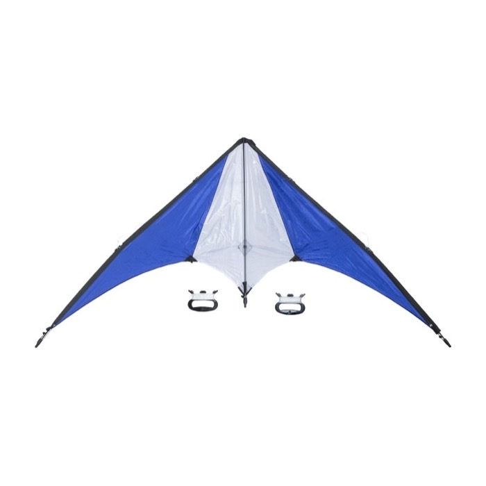 Papagaio delta em poliéster 210T ripstop com uma largura de 160 cm e inclui duas pegas de plástico. É embalado individualmente numa bolsa com uma alça de transporte ajustável.