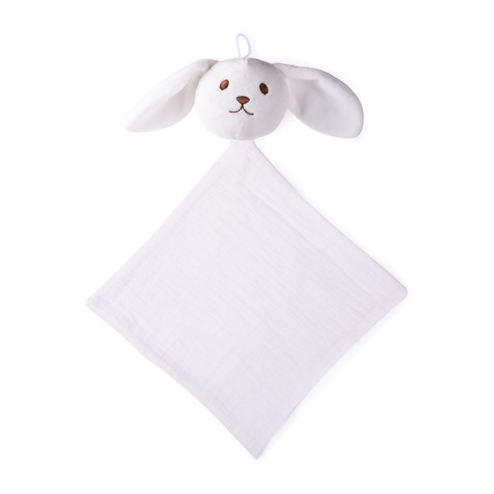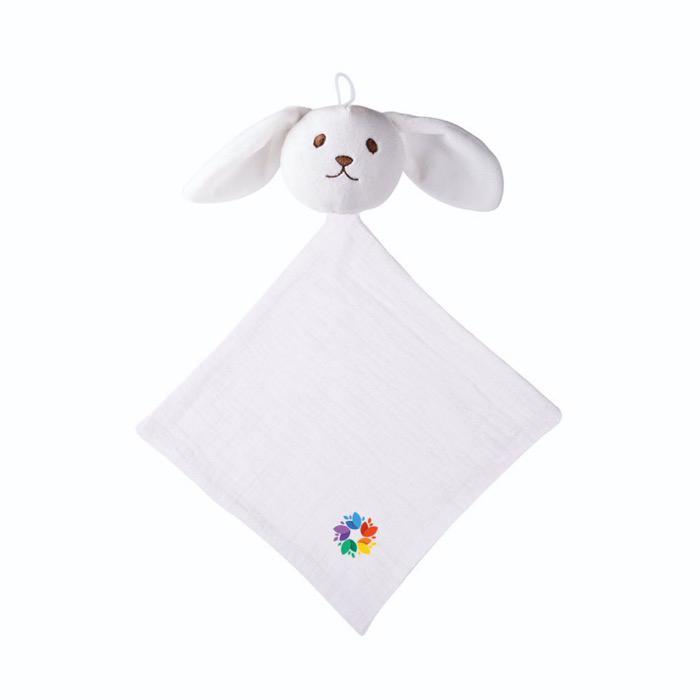 Doudou de gaze de algodão 240 g/m² com textura macia, concebido para proporcionar bem-estar ao bebé e dar um brinde carinhoso em ações corporativas.