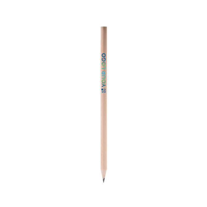 Lápis HB redondo fabricado em madeira 100% ecológica. Afiação pronta para uso imediato. Um acessório prático que reforça a sustentabilidade da sua empresa.