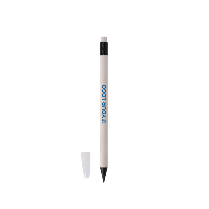 Lápis publicitário eterno feito de pacotes de leite reciclados. Escrita infinita com borracha integrada. Um brinde criativo e ecológico.
