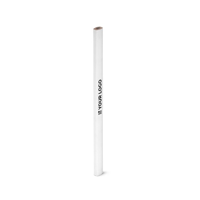O clássico lápis de carpinteiro em madeira, adequado para oferecer como brinde publicitário por empresas relacionadas com o fabrico de móveis e similares.