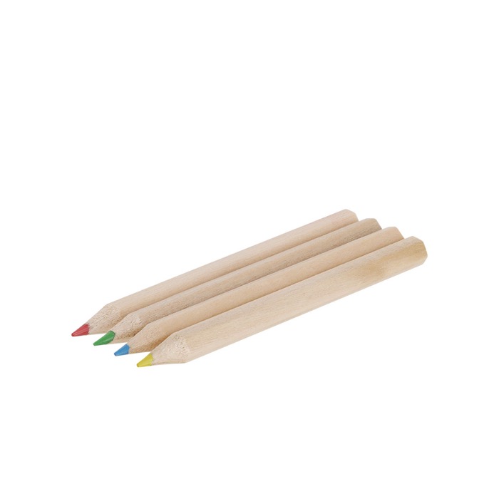 Caixa de 4 lápis de madeira com corpo hexagonal e minas em várias cores, desenhada para uso cómodo no escritório, formação ou ações em ponto de venda. Inclui estojo de cartão branco com fecho de aba, fácil de distribuir e guardar. O conjunto foi desenhado para marcação digital, o que permite aplicar logótipos ou mensagens com bom nível de detalhe no estojo, mantendo uma apresentação ordenada. Opção prática para eventos, aulas corporativas ou campanhas de marca.