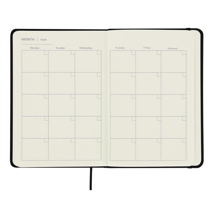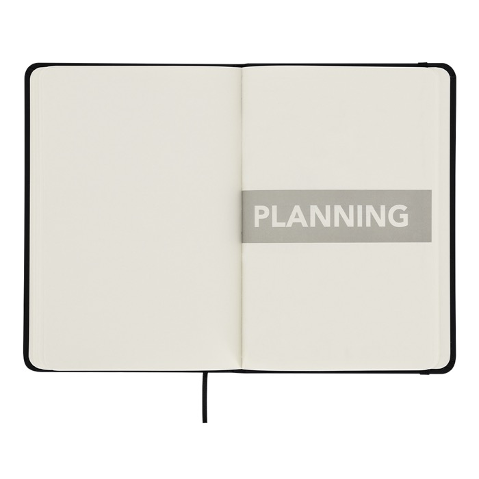 Caderno com planificador mensal incluído, de tamanho ligeiramente maior do que A5. Feito de PU macio com fita elástica a condizer. Inclui: 98 folhas de cor creme, lisas; 13 folhas planificadoras mensais sem datas, com vista de calendário mensal. Folhas pautadas adicionais para notas. Perfeito para planificar o seu mês, tirar apontamentos ou tomar notas e organizar o seu dia a dia.