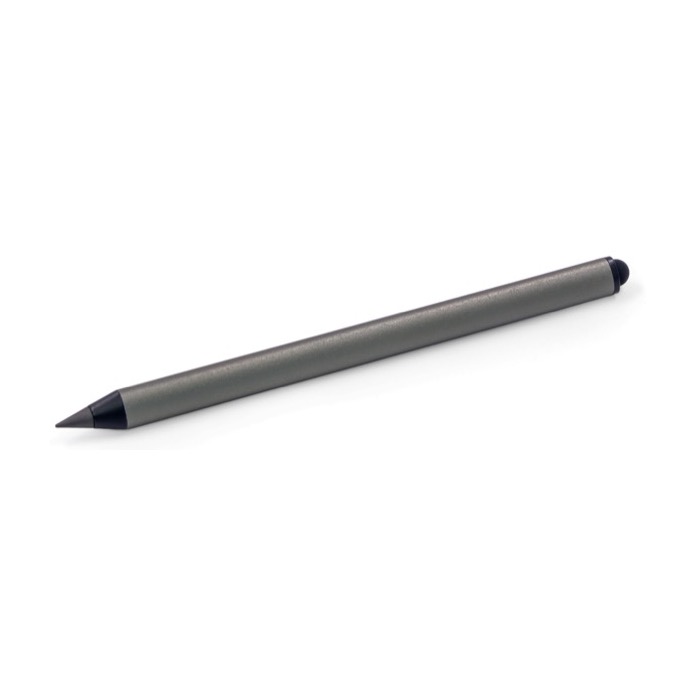 Caneta 2 em 1 de alumínio reciclado com ponteira táctil integrada, desenhada para uso diário sem recargas. A ponta de grafite resistente permite escrever até 2000 m sem necessidade de tinta, reduzindo paragens e recargas no escritório ou em movimento. O corpo de alumínio mecanizado proporciona pega firme e presença cuidada, adequada para ambientes profissionais. Entregue numa caixinha castanha e embalada à unidade para uma entrega ordenada em ações de marca, feiras ou eventos corporativos.