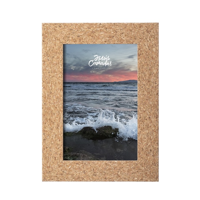 Porta fotos fabricado em cortiça, com vidro de proteção e suporte posterior para orientação na horizontal ou na vertical. Desenhado para fotografias com tamanho de até 10x15 cm. Apresentado em atrativa caixa individual de design eco.