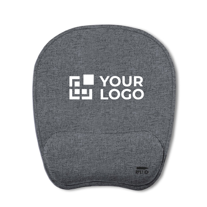 Tapete para rato fabricado em suave poliéster RPET, elaborado a partir de plástico reciclado para assim fomentar a reutilização de resíduos plásticos e ajudar na sustentabilidade do planeta. Com base anti-deslizante em silicone e descanso de pulso almofadado para prevenir o stress e a dor nas articulações. Distintivo RPET impresso.