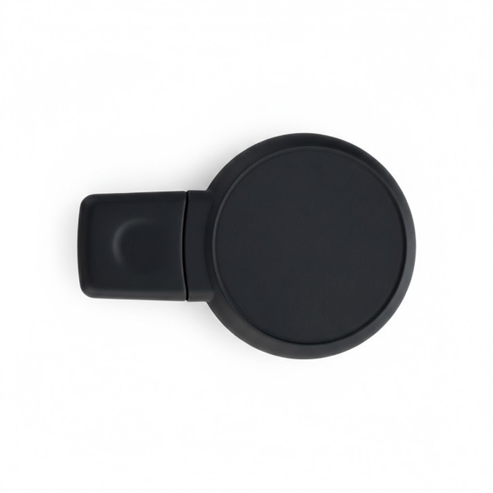 Memória USB com capacidade até 32GB com formato circular e acabamento em borracha.
