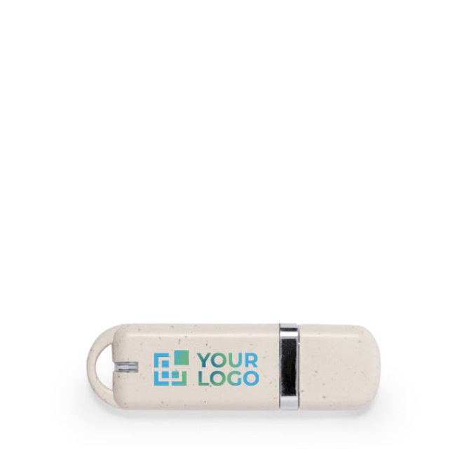 Atraia a atenção com este USB de palha de trigo. A sua carcaça rígida e a tampa de proteção garantem um armazenamento elegante e seguro para os seus dados.