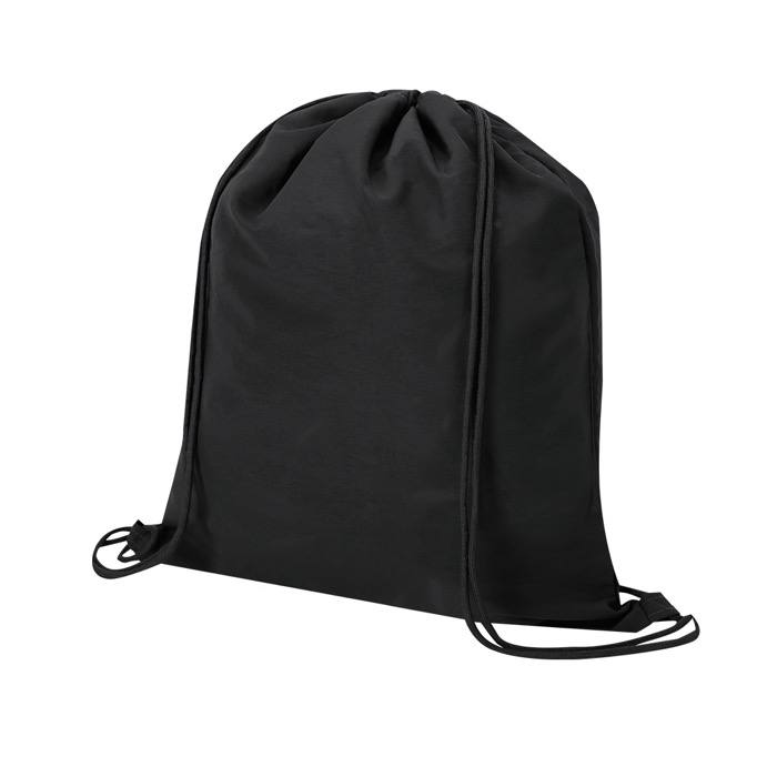 Mochila de cordão de soft nylon de 135 g/m² com sistema de fecho automático via cordão. Formato leve e compacto, pensada para levar o essencial no dia a dia sem ocupar espaço quando não está a ser utilizada. O fecho rápido permite abrir e fechar com um só gesto e os cordões também funcionam como alças para transporte confortável. Superfície adequada para personalização com logo em campanhas e ações de visibilidade. Recomendada para feiras, eventos desportivos ou brindes empresariais de boas-vindas.