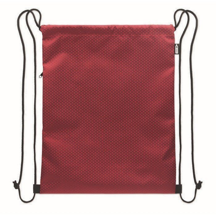 Mochila de cordão de rPET com bolso lateral e fecho de correr