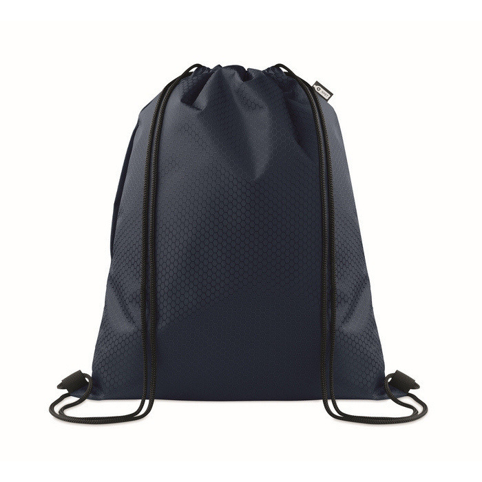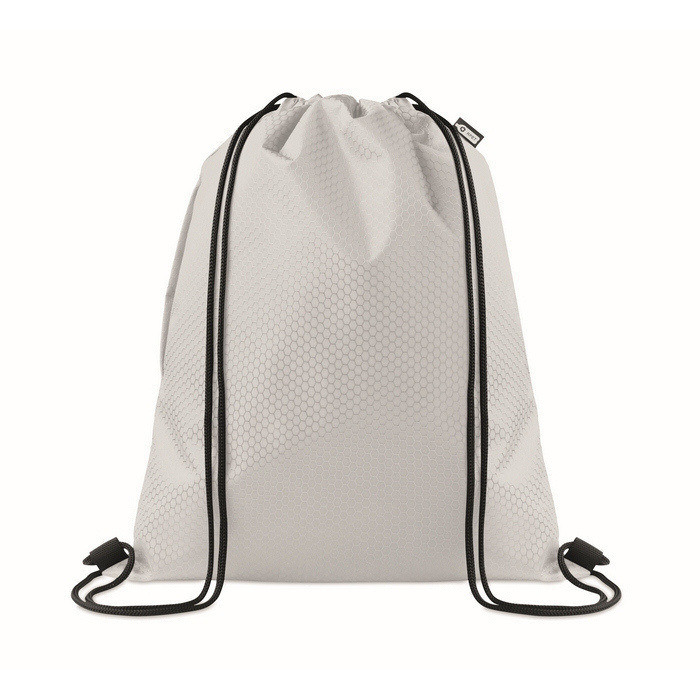 Saco-mochila de cordão de poliéster rPET 420D com bolso lateral vertical com fecho de correr e forro interior rPET 210D. Inclui cordão resistente em ambos os lados para fecho rápido e transporte confortável no dia a dia. Capacidade de 4,5 litros. Aguenta carga máxima de 5 kg, adequado para levar documentação, acessórios ou um kit básico de trabalho. Escolha prática para eventos, feiras e packs de boas-vindas de empresas.