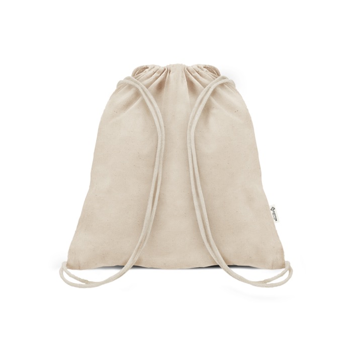Saco mochila em algodão reciclado e plástico reciclado, pensado para o uso diário em deslocações, passeios ou dias de trabalho fora do escritório. O formato tipo saco ajuda a transportar objetos pessoais de forma confortável, enquanto o tecido de 140 g oferece resistência extra para uma utilização continuada. Permite personalização para incluir o logótipo ou uma mensagem de campanha e manter visibilidade em movimento. Opção prática para ações de RH, feiras, eventos empresariais ou para dar as boas-vindas a novos colaboradores.